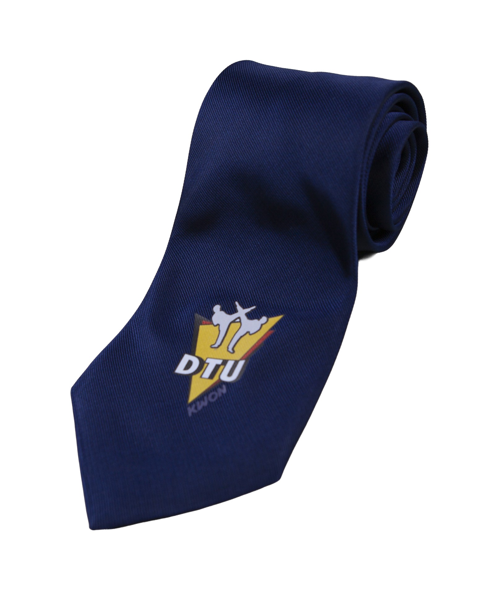 Navy blue tie with and DTU logo and discreet KWON logo.
